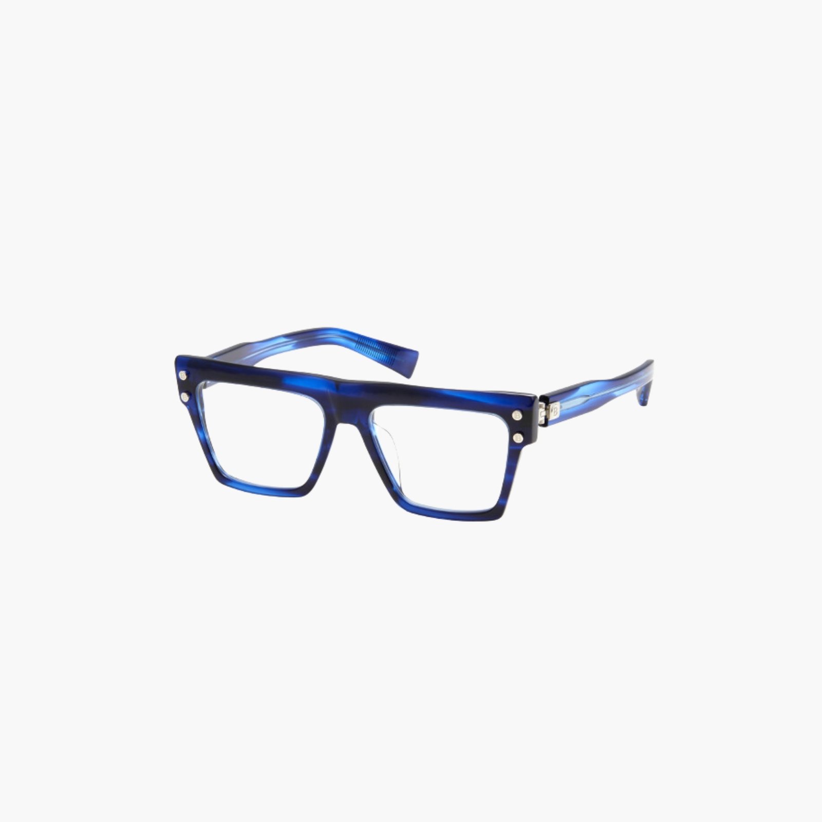 Cada generación sucesiva de la serie B de monturas deja muy clara la convincente combinación de lujo y rock que distingue a Balmain de Olivier Rousteing. Al igual que todas las monturas B anteriores, las B-V dependen de una silueta rebelde y sin disculpas que combina una llamativa línea recta entre cejas, una gruesa montura de acetato y una sólida bisagra personalizada de titanio.