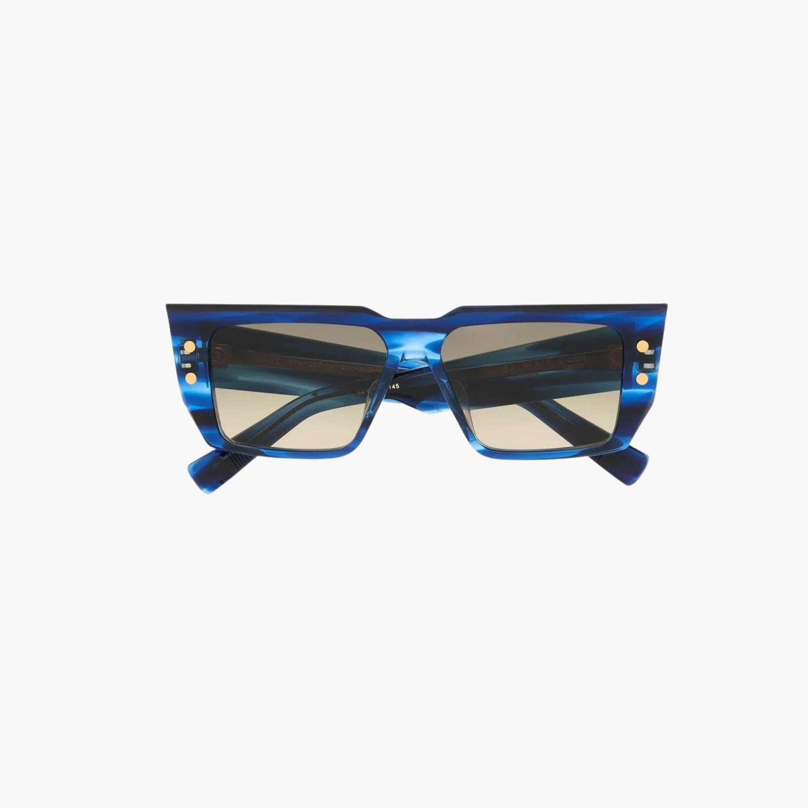 La versión más reciente de la montura B, la B-VI, continúa basándose en esa silueta rebelde y, además de la ahora familiar parte superior aplanada y los toques geométricos en forma de ojo de gato, esta edición agrega una parte superior nítida y distintiva. -Visera protectora de montura, tallada por expertos en el grueso y denso acetato japonés que se utiliza para fabricar todas las monturas de la serie B.